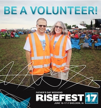Sign up to volunteer for RiseFest 2017. This event doesn't happen without help from our team of volunteers. Work a 4 hour shift and get a free festival ticket and volunteer t-shirt. Thank you for being ready and willing to serve! Descriptions of each position and registration can be found here.
